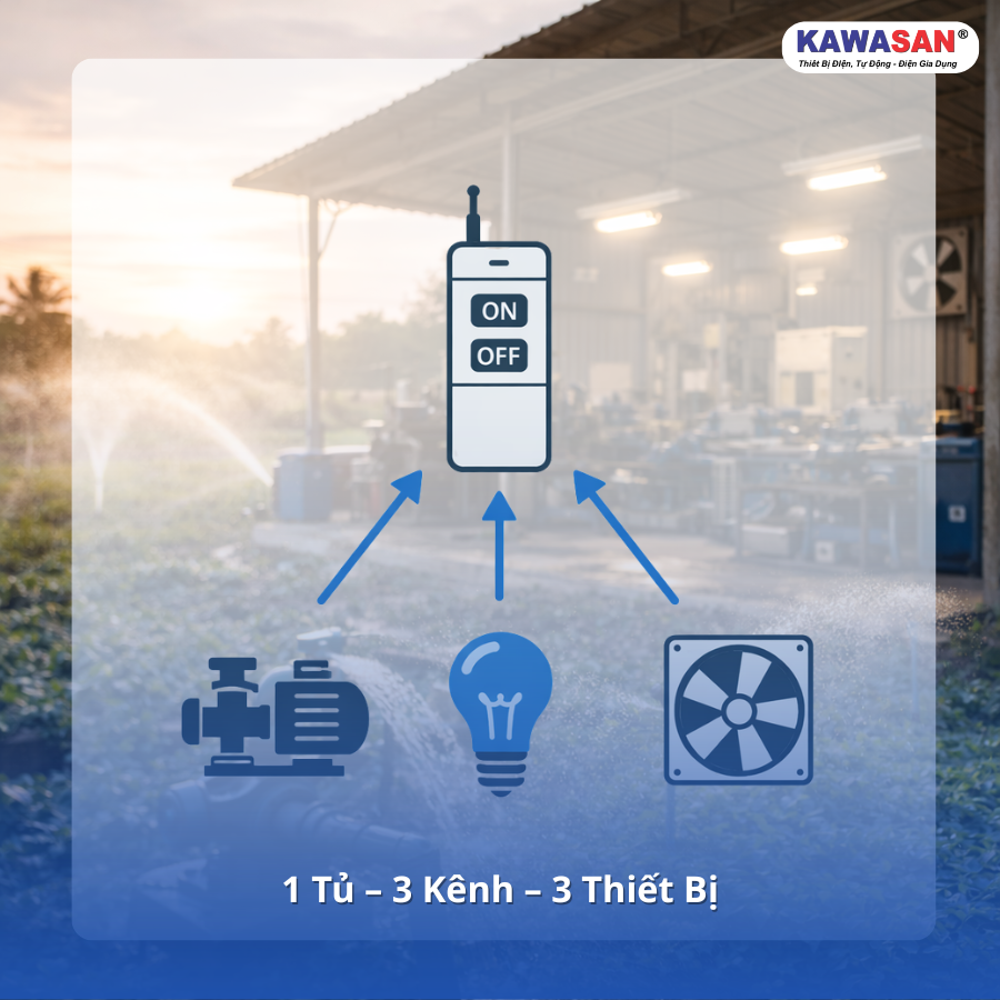 Sản phẩm này không chỉ đáp ứng tất cả các lợi ích đã nêu mà còn được thiết kế đặc biệt để hoạt động bền bỉ trong môi trường công nghiệp. Với khả năng điều khiển linh hoạt qua ba kênh độc lập, bạn có thể dễ dàng quản lý các thiết bị như bộ điều khiển từ xa máy bơm nước điều khiển, motor công nghiệp hay quạt thông gió chỉ bằng một chiếc remote tiện dụng. Tính năng chống mất pha tích hợp là một điểm cộng lớn, giúp bảo vệ tài sản và kéo dài tuổi thọ của thiết bị.
