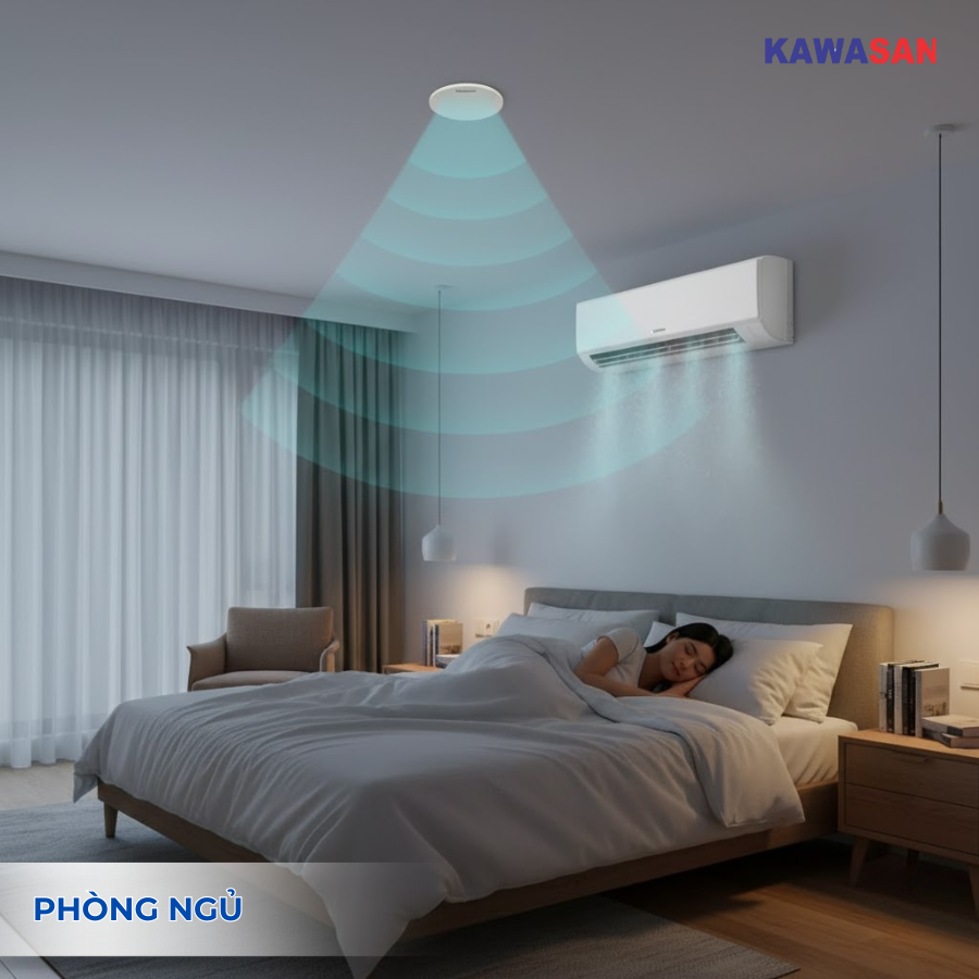 - Khi đi ngủ, người dùng chỉ cần tắt công tắc chính để ngắt đèn; lúc này cảm biến ngừng hoạt động, chỉ duy trì cho điều hòa chạy ổn định.