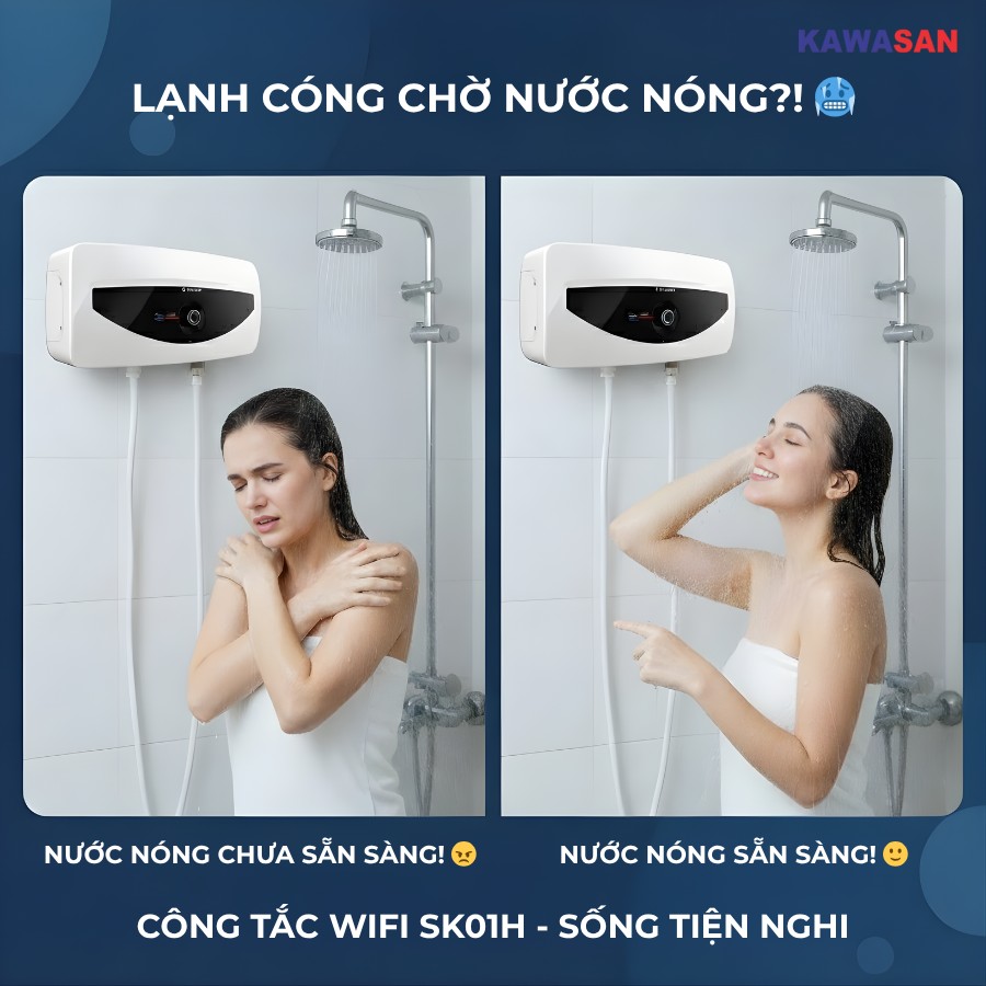 ToggleBạn có thường xuyên quên tắt bình nước nóng sau khi sử dụng? Hay phải chờ đợi nước nóng mỗi khi cần? Những thói quen tưởng chừng nhỏ nhặt này đang âm thầm làm tăng hóa đơn tiền điện và lãng phí nguồn năng lượng quý giá. Trong thời đại số, việc tìm kiếm một giải pháp thông minh để **hẹn giờ tắt/bật** các thiết bị điện, đặc biệt là bình nước nóng, trở nên cấp thiết hơn bao giờ hết. Bài viết này sẽ giới thiệu đến bạn công tắc Wi-Fi thông minh Kawasan SK01H – “người hùng” thầm lặng giúp bạn kiểm soát hoàn toàn việc tiêu thụ điện năng, mang lại sự tiện lợi và hiệu quả kinh tế đáng kinh ngạc.