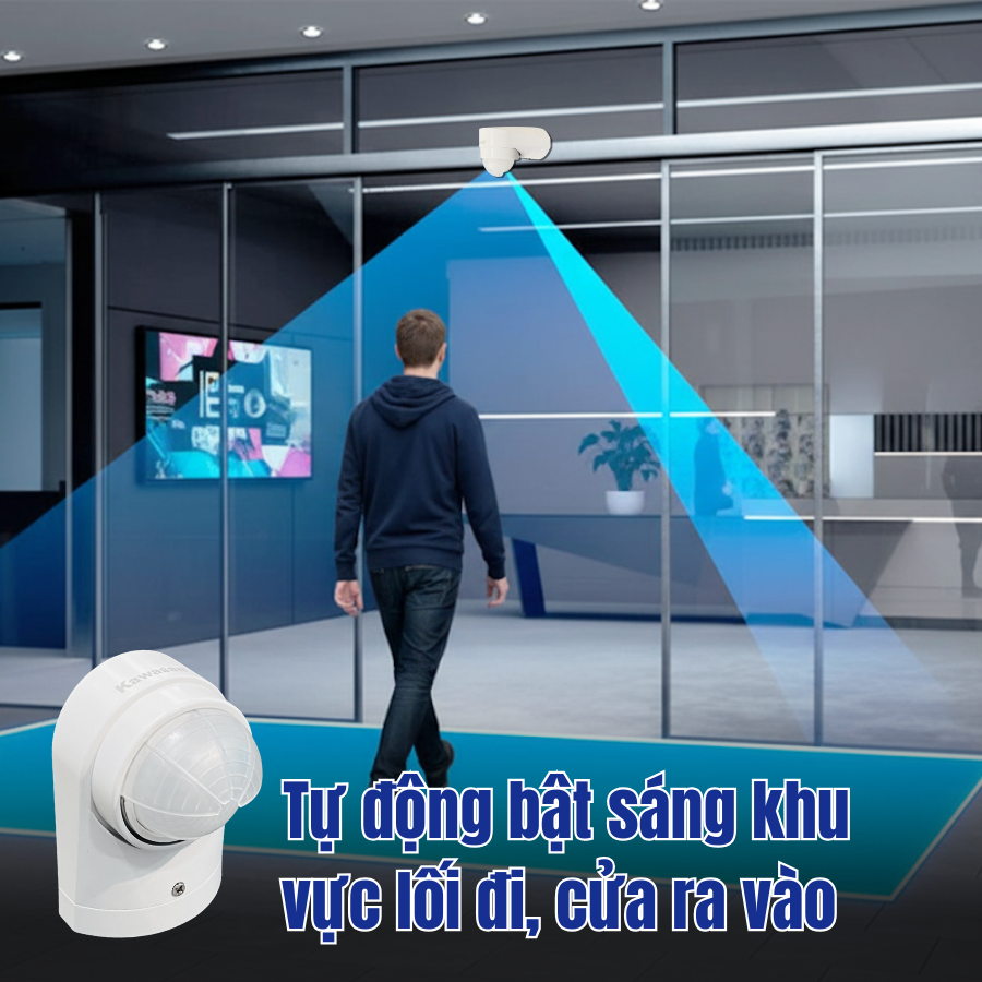 Công tắc cảm ứng hồng ngoại KW-SS782B được trang bị công nghệ cảm biến tiên tiến với góc quét siêu rộng 240°, nhận diện chuyển động dựa trên thân nhiệt của người và vật. Khi có chuyển động đi vào vùng cảm ứng, thiết bị sẽ tự động kích hoạt đèn, quạt hoặc các thiết bị điện khác.