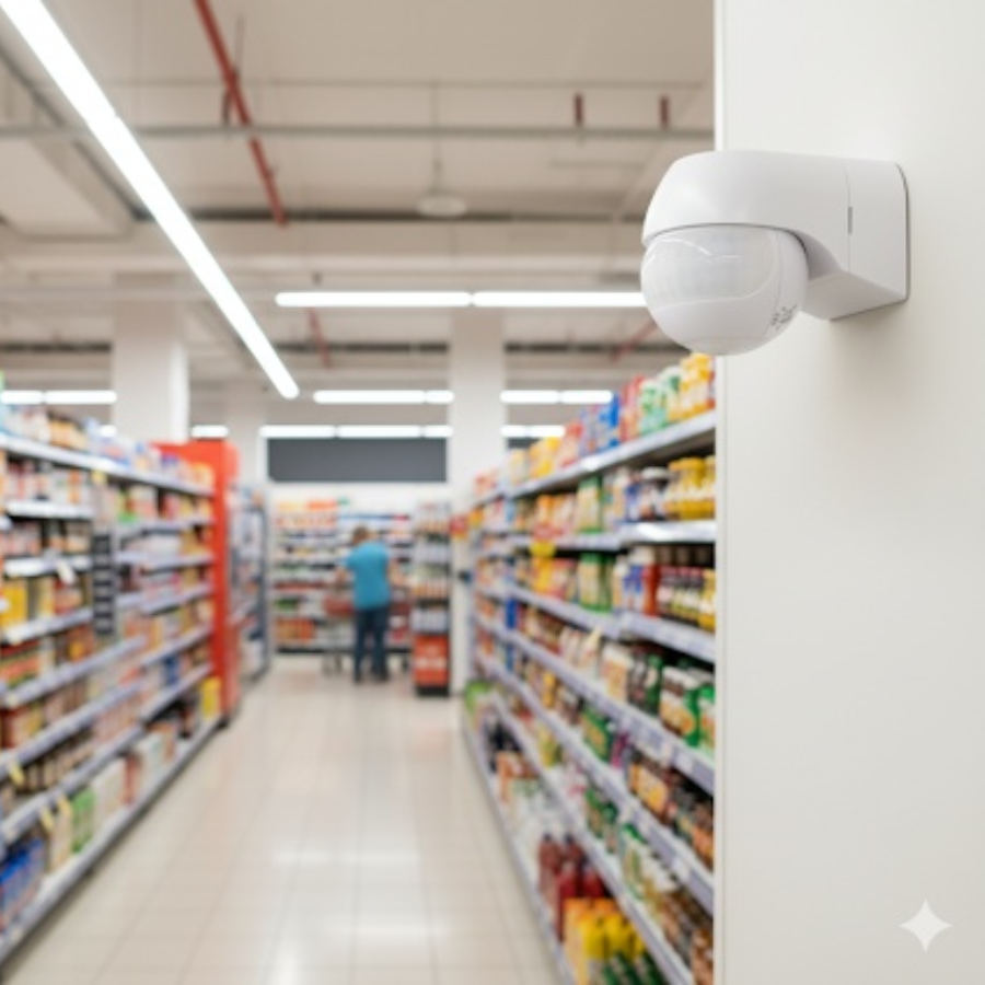 - Cửa hàng & siêu thị: Đặt tại khu vực cửa ra vào, lối đi để tự động bật đèn khi có khách, tăng tiện ích và tiết kiệm điện.