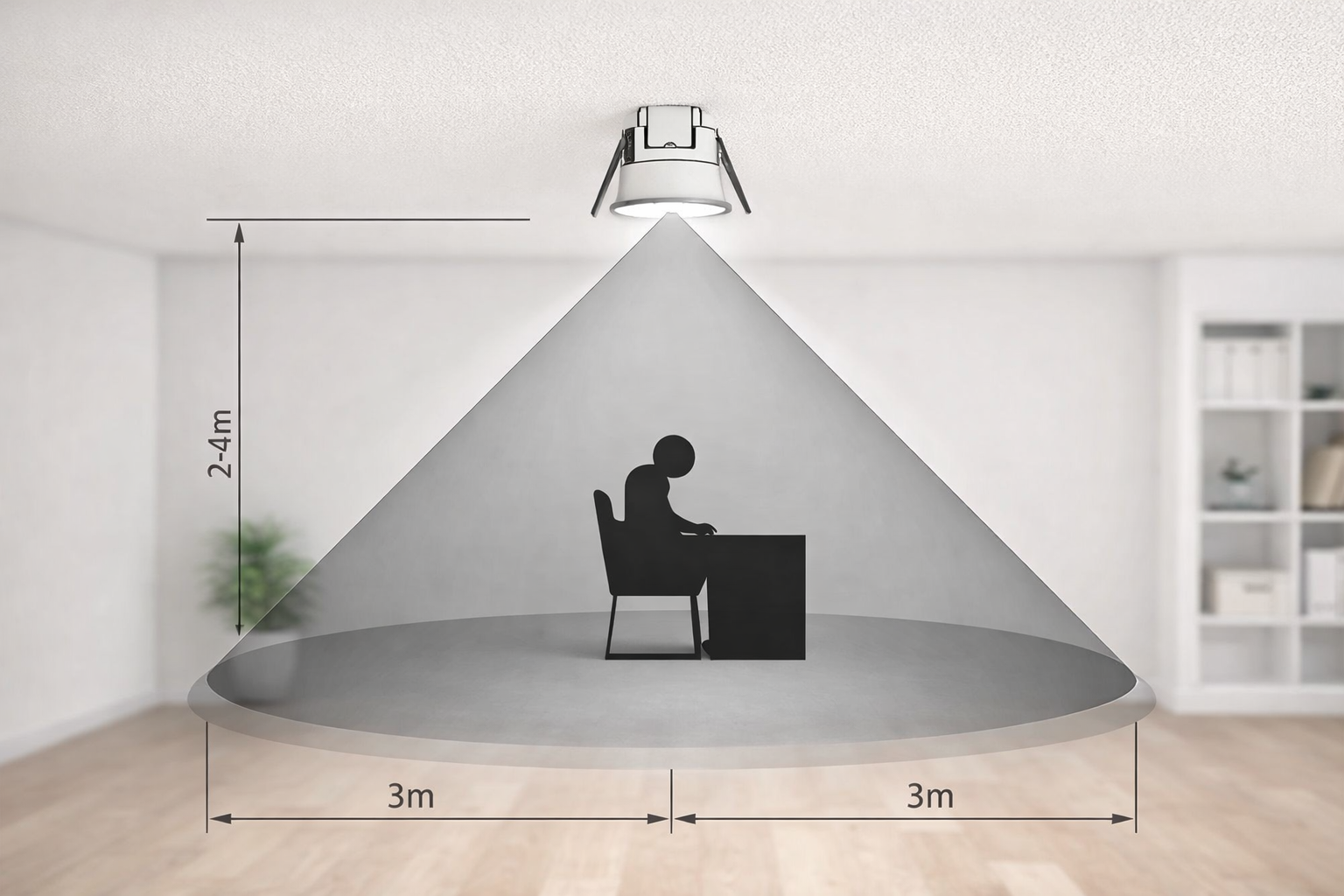 - Radar 24GHz sau đó duy trì độ nhạy cực cao để phát hiện sự hiện diện dù không chuyển động → đèn luôn sáng khi có người.