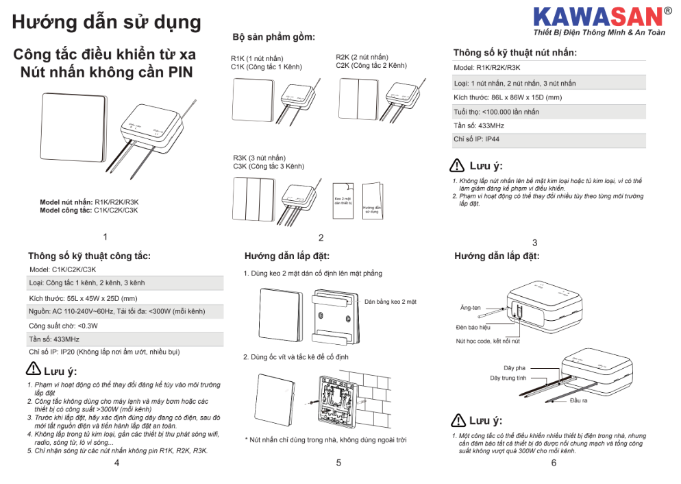 Công Tắc Điều Khiển Từ Xa Không Dây KAWASAN – Nút Nhấn Không Cần PIN