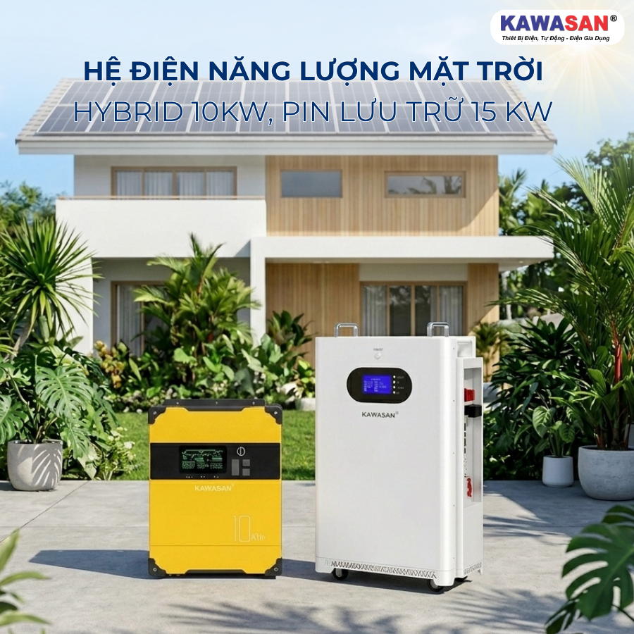 Hệ Điện Năng Lượng Mặt Trời Hybrid 10Kw, Pin Lưu Trữ 15Kw