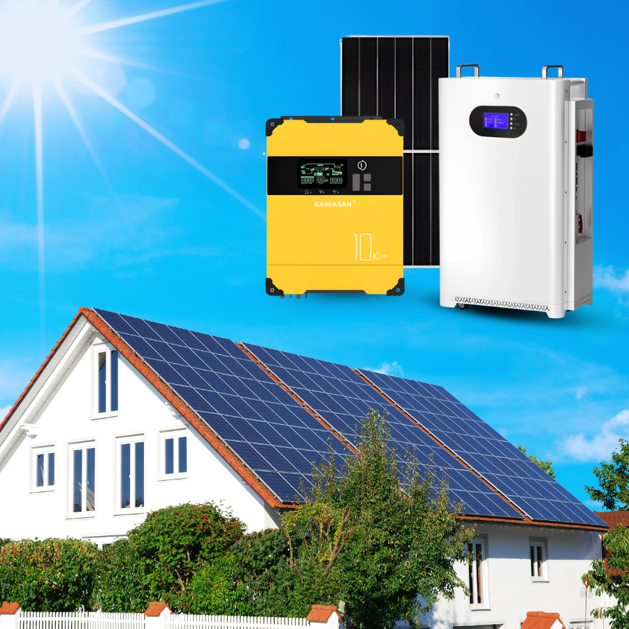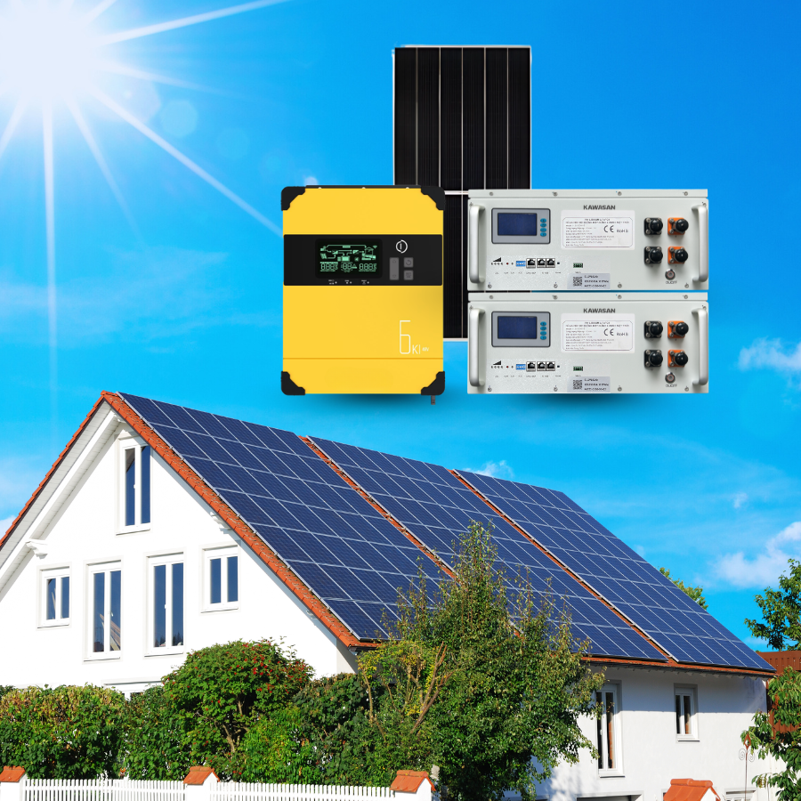 Hệ Điện Năng Lượng Mặt Trời Hybrid Lưu Trữ (Biến Tần 10.3KW, Pin Lưu 15Kw(300Ah) có thể mở rộng lên tối đa 20KW)